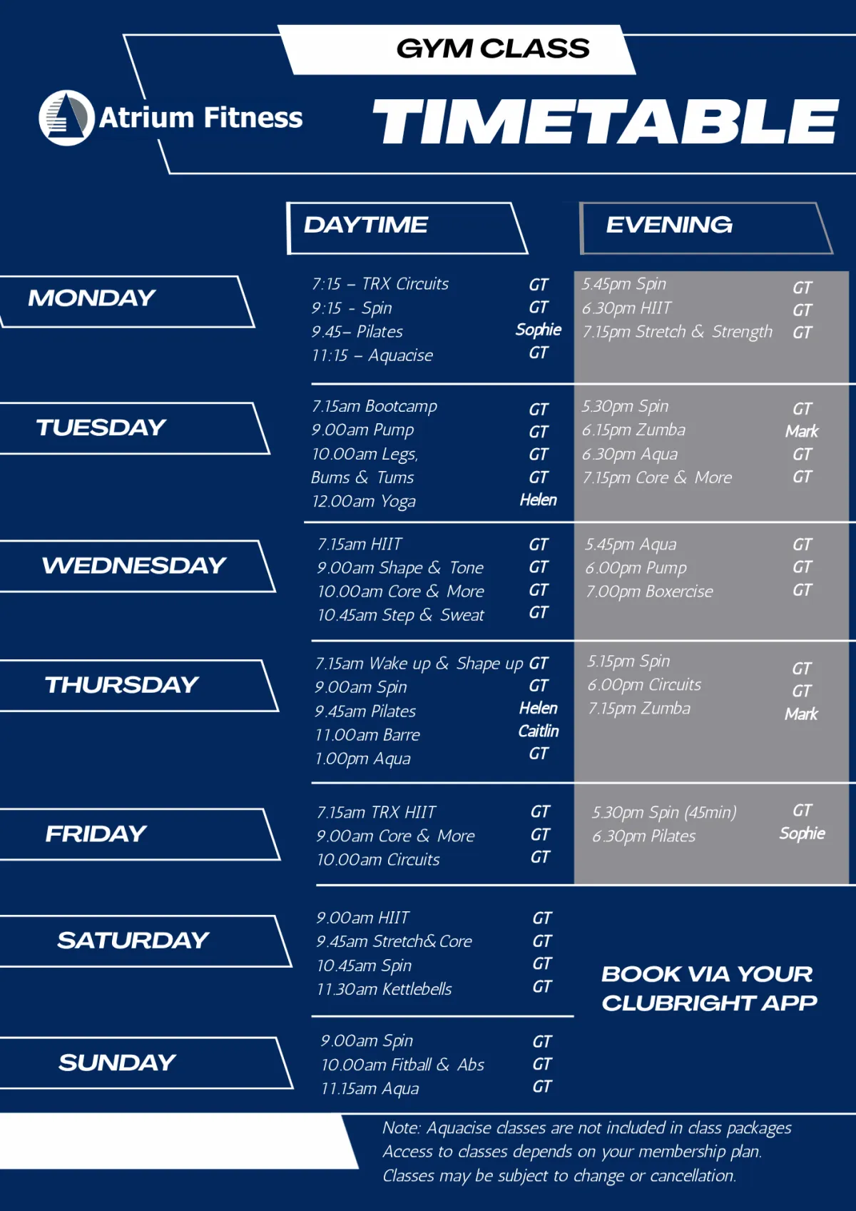* Terms and conditions apply, Class packages are non-refundable. Aquacise classes are not included in class packages